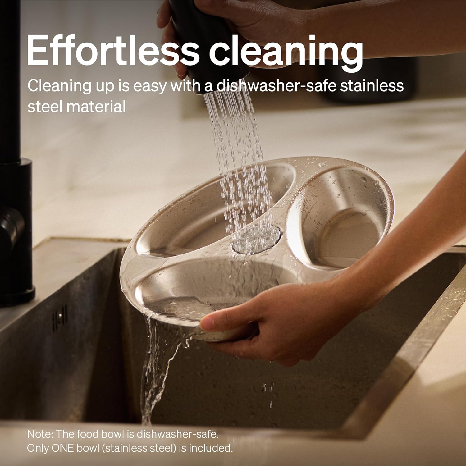 The included stainless steel bowl offers multiple benefits it’s durable, rust-resistant, and far more hygienic than plastic. Stainless steel helps prevent bacteria buildup, reduces odor retention, and is dishwasher-safe for effortless cleaning.