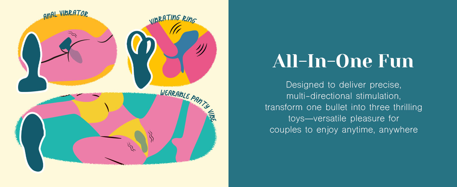 At the heart of this couples’ kit is a removable vibrating bullet, crafted for power, precision, and portability. The bullet can be used alone or paired with one of three interchangeable silicone attachments a flexible ring, a wearable insert, and a smooth sleeve.